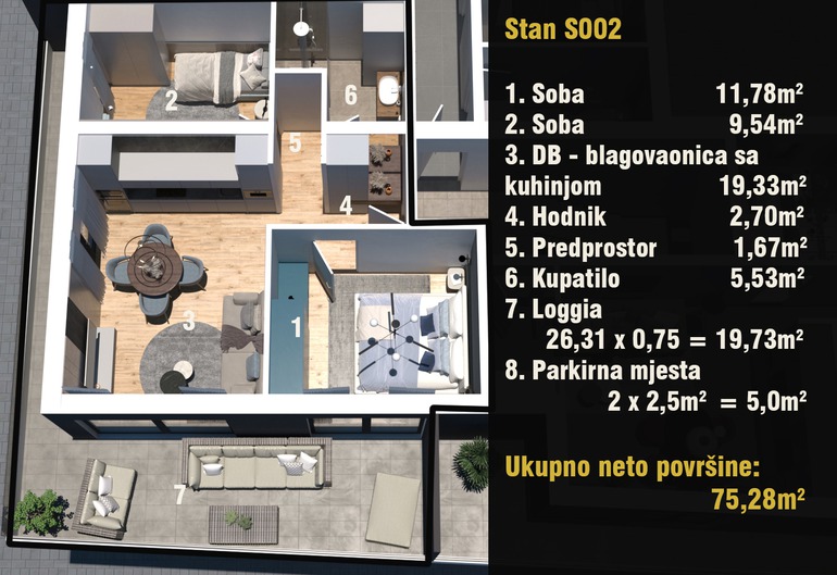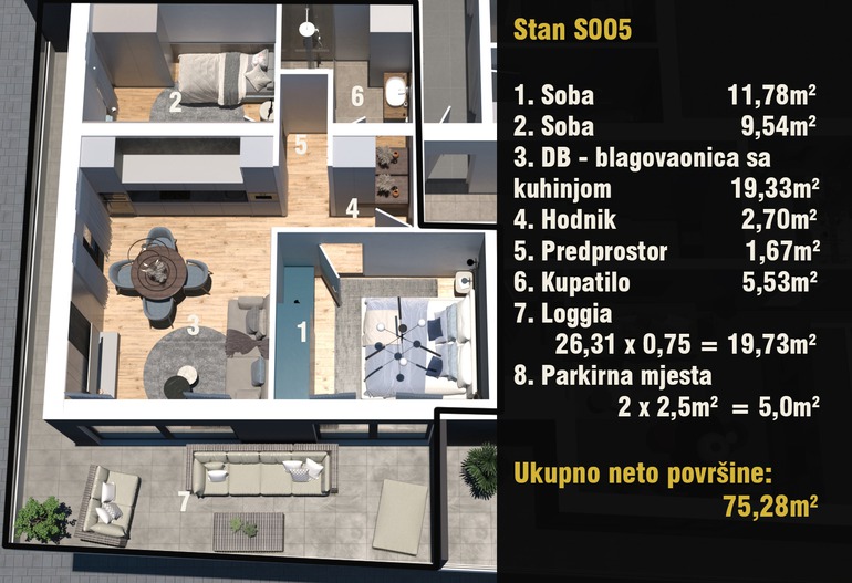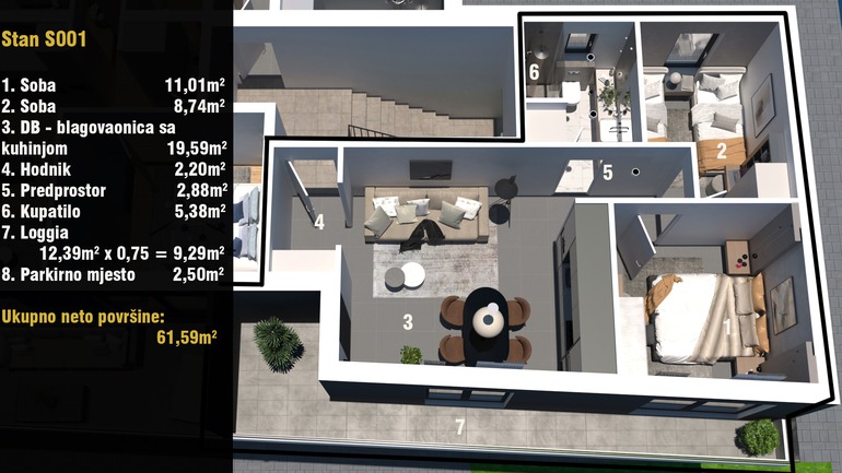 In the next six 3D layouts of the floor plans of the apartments, take a look at the top apartments from the MEDULIN SUPERIOR PROJECT, which will soon be fully equipped and remodeled for moving-in in December this year.