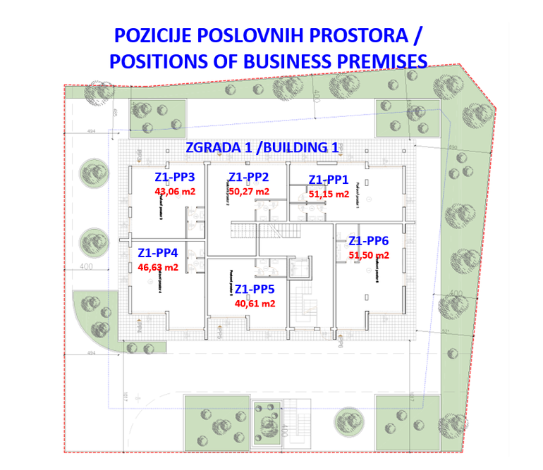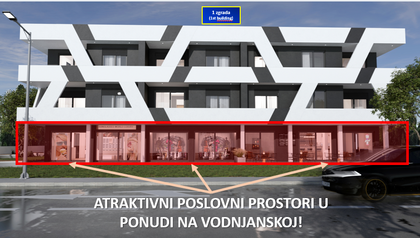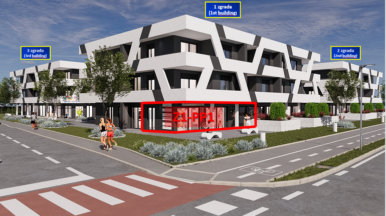 For reservation, there are 10 business premises on the ground floors of buildings 1 and 2 in an attractive location along the Vodnjanska road at the northern entrance to the city of Pula (near the rotor). Areas of business premises of 45 - 55 m2 with secured parking spaces in a large underground garage and elevator.