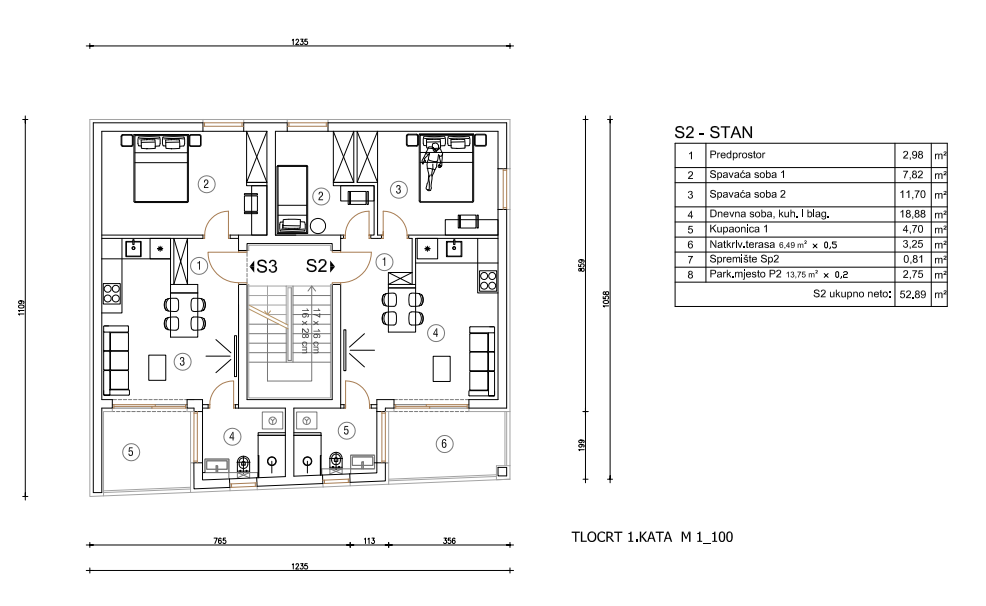 ZGR3/S2 - dvosoban stan, 1 kat (two bedroom apartment, 1 st floor)