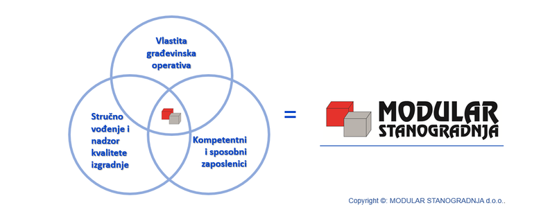 Tvrtka Modular Stanogradnja d.o.o. posjeduje impresivnu vlastitu građevinsku operativu i kompetentne zaposlenike te je u kratkom roku sposobna izvesti kompletne građevinske radove izgradnje višestambenih i poslovnih objekata, modernih urbanih vila sa bazenima i obiteljskih kuća u roh-bau fazi kao i završne građevinske radove i opremanje objekata po želji kupaca.